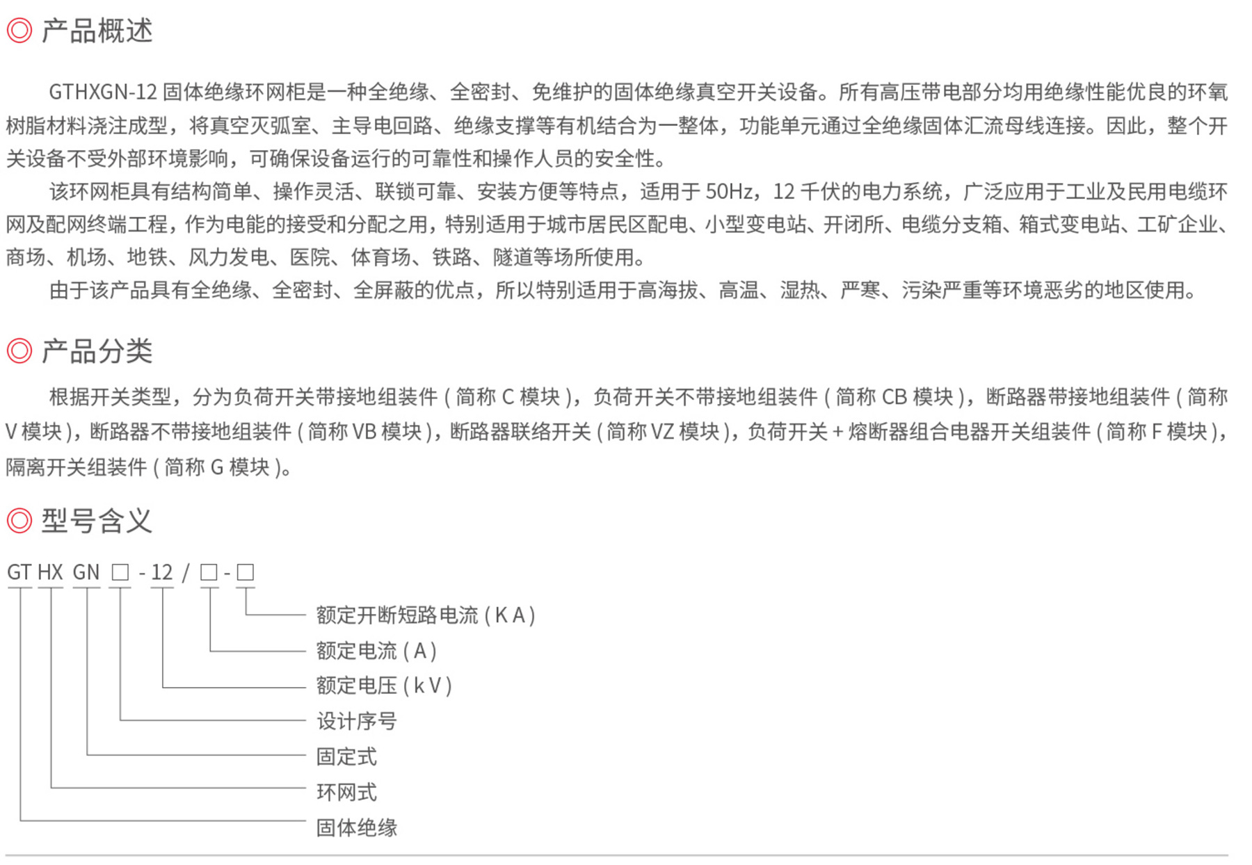 GTHXGN-12 固体绝缘高压交流金属环网开关设备