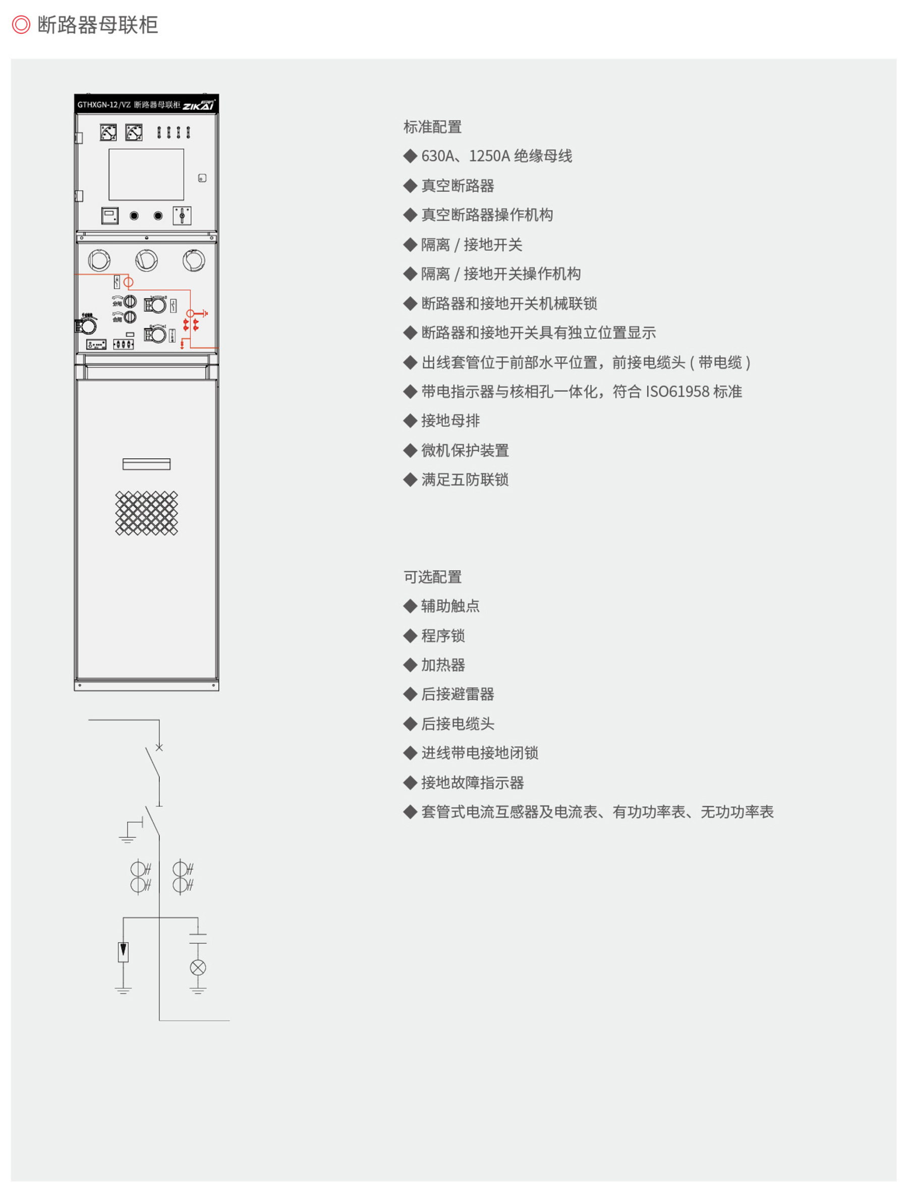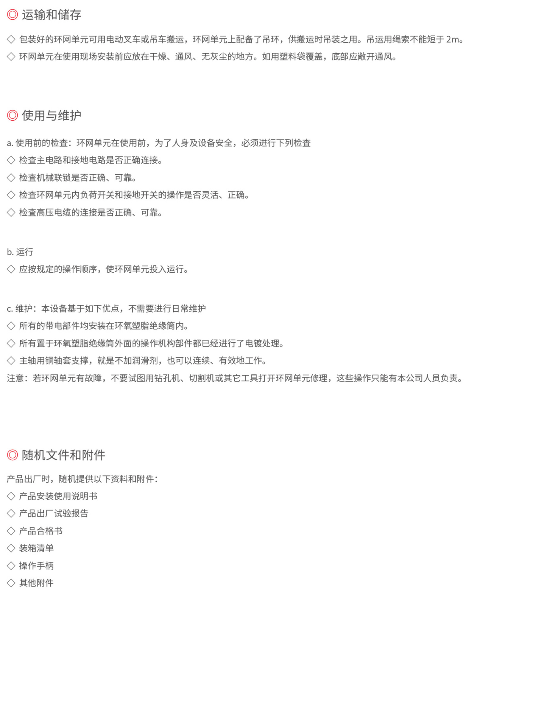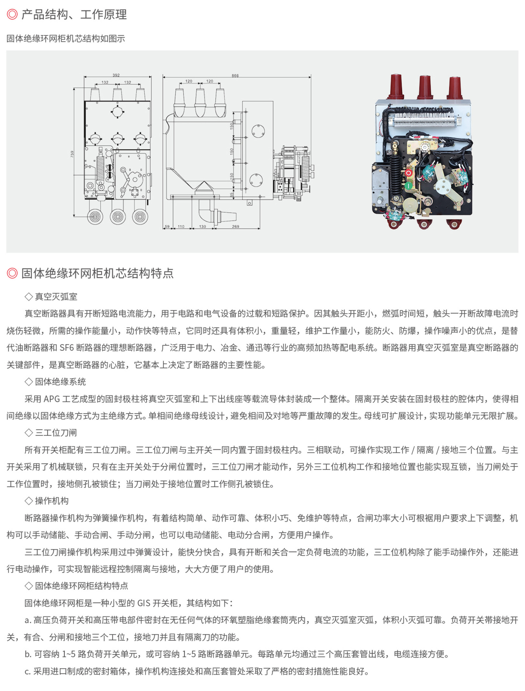 GTHXGN-12固体绝缘环网柜是一种全绝缘、全密封、免维护的固体绝缘真空开关设备。所有高压带电部分均用绝缘性能优良的环氧树脂材料浇注成型,将真空灭弧室、主导电回路、绝缘支撑等有机结合为一整体,功能单元通过全绝缘固体汇流母线连接。因此,整个开关设备不受外部环境影响,可确保设备运行的可靠性和操作人员的安全性。