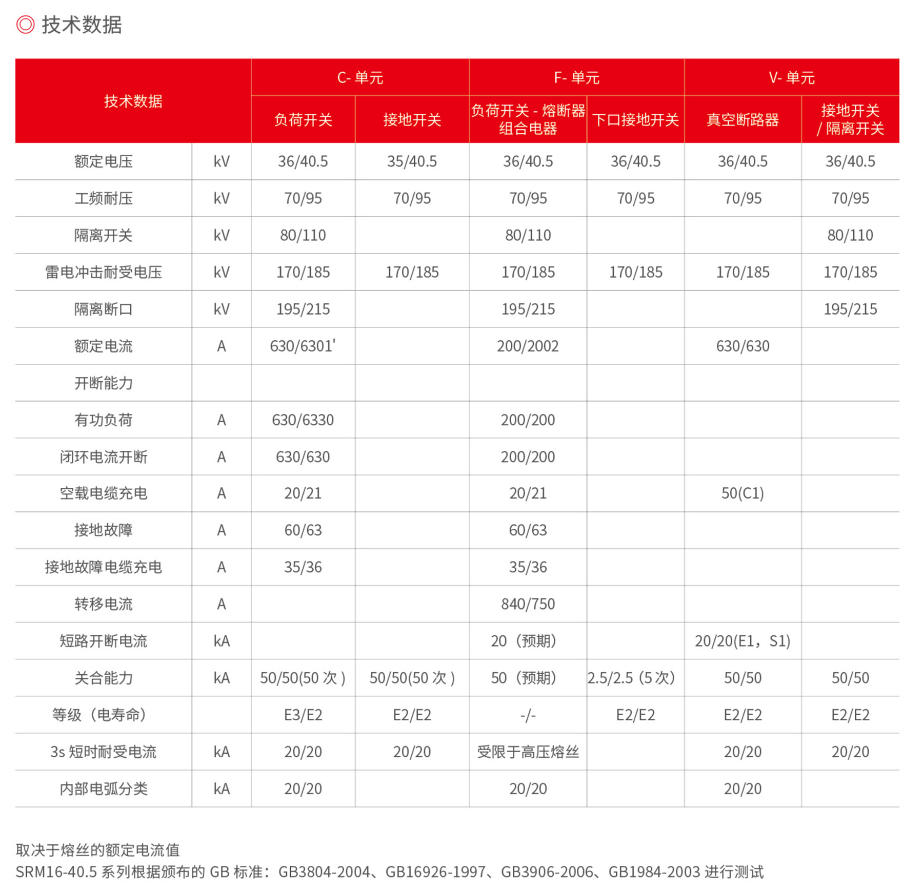 SRM16-40.5 系列环网柜提供了10种标准组合形式,能够适应大多数36~40.5kV配电网络的应用要求。SRM16-40.5是紧凑型开关柜,可以提供所选功能单元的几乎是任意的组合。