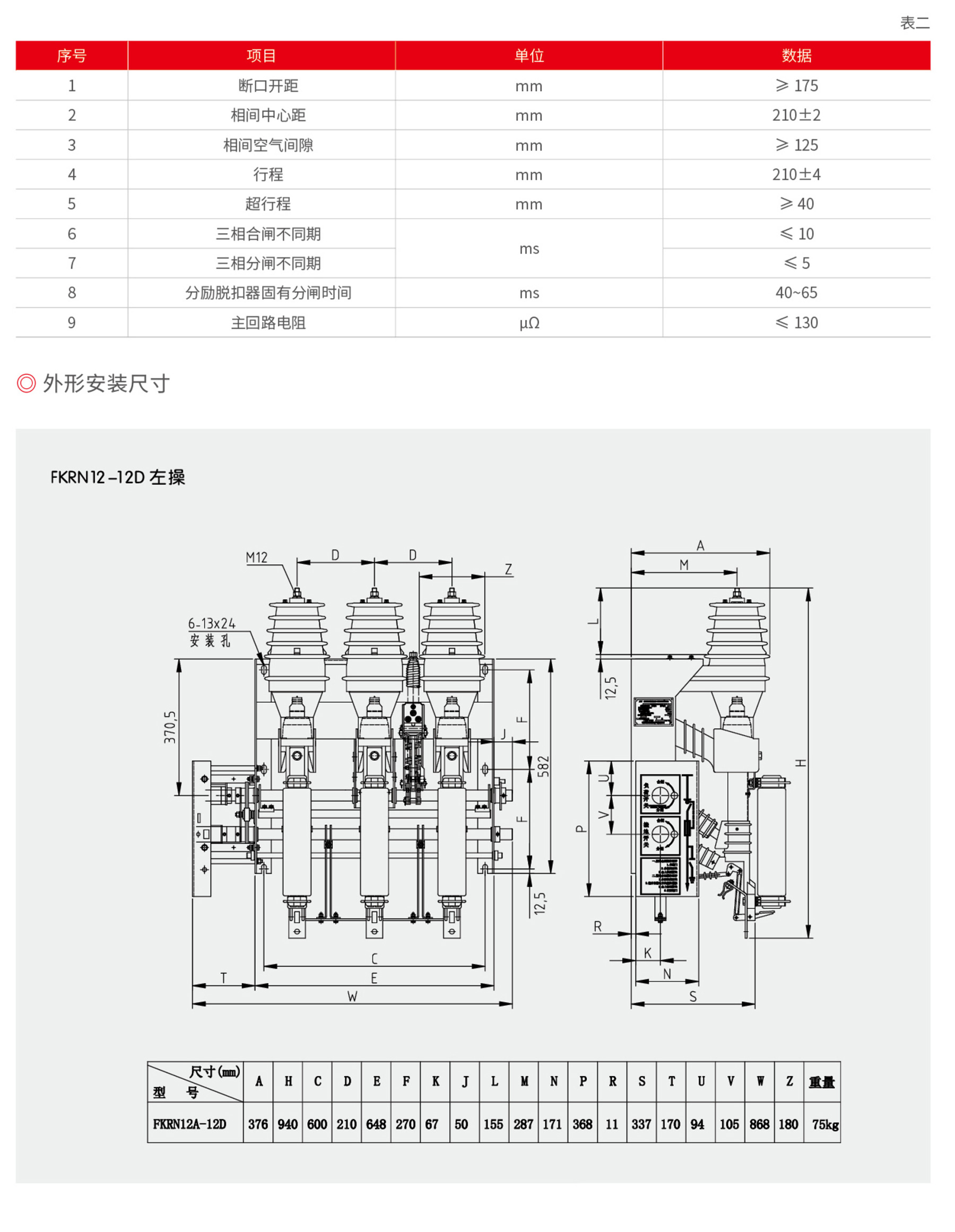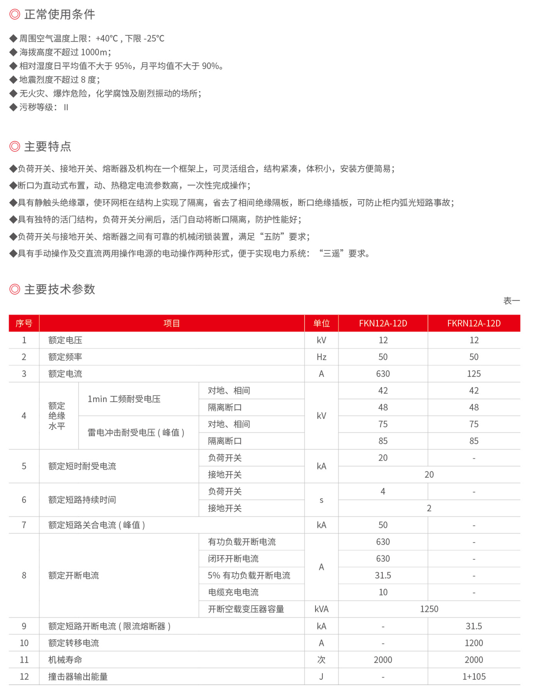 FKN12A-12D压气式负荷开关,FKRN12A-12D系列压气式负荷开关-熔断器组合电器,适用于12kV及以下三相配电系统中,作为变压器、电缆、架空线路等电力设备的控制和保护之用;特别适用于城网、农网的终端变电站及箱式变电站。并适用于环网、双辐射供电单元的控制和保护。